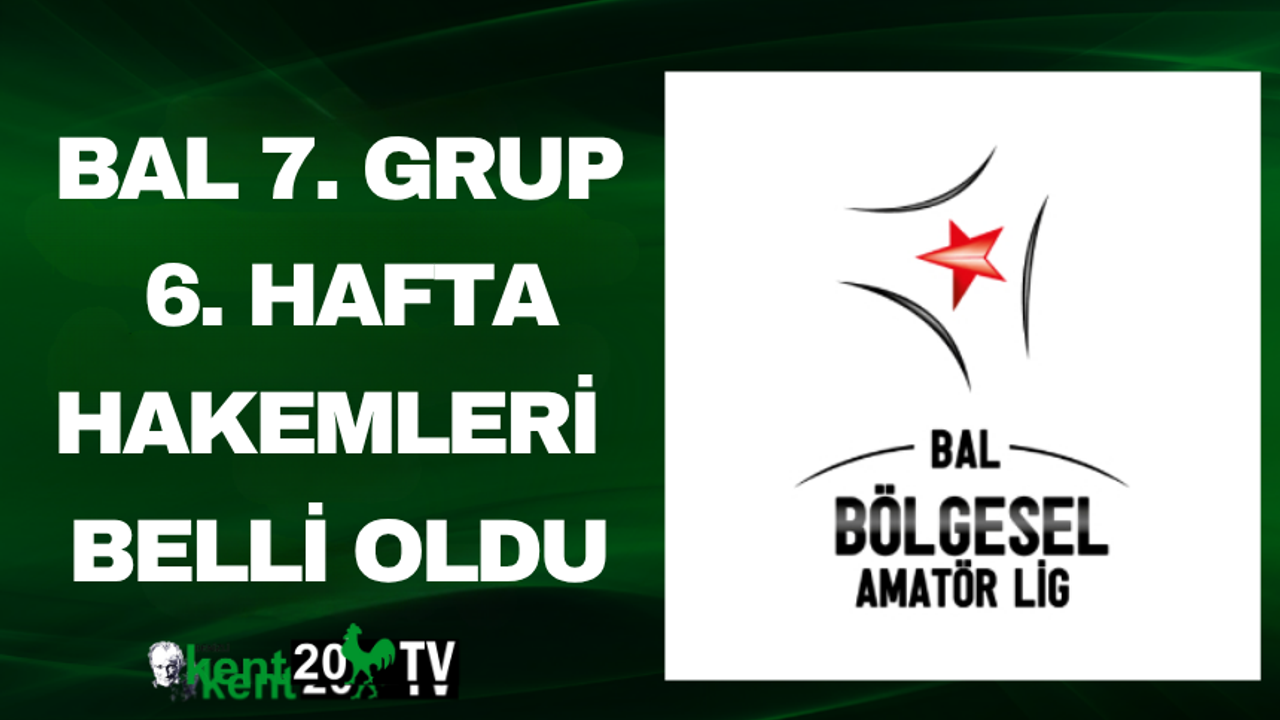 Bölgesel Amatör Lig (BAL) 7. Grup’ta 6. hafta maçlarını yönetecek hakemler açıklandı. Haftanın maçlarında deneyimli ve genç hakemler sahada olacak. İşte karşılaşmalar ve hakem atamaları: