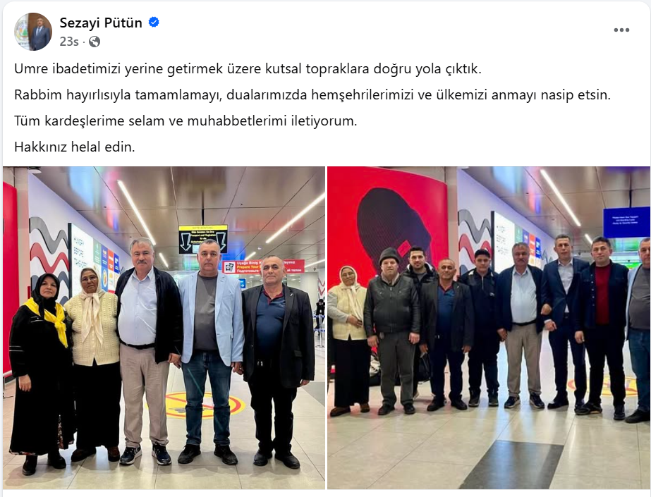 Umre yolculuğunu sosyal medya hesabından duyuran Başkan Sezayi Pütün, paylaşımında şu ifadelere yer verdi: