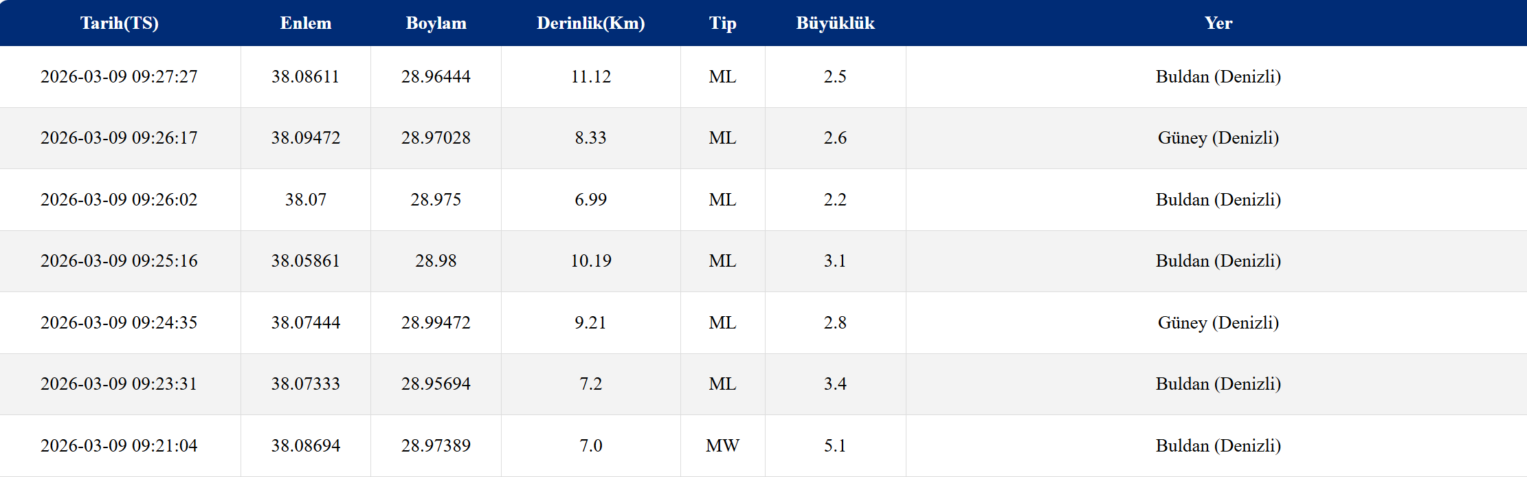 Denizli’nin Buldan ilçesine bağlı Yenicekent Mahallesi çevresinde sabah saatlerinde yaklaşık 5.0–5.1 büyüklüğünde bir deprem meydana geldi. Deprem Denizli merkez başta olmak üzere Aydın, İzmir ve Muğla gibi çevre illerde de hissedildi.