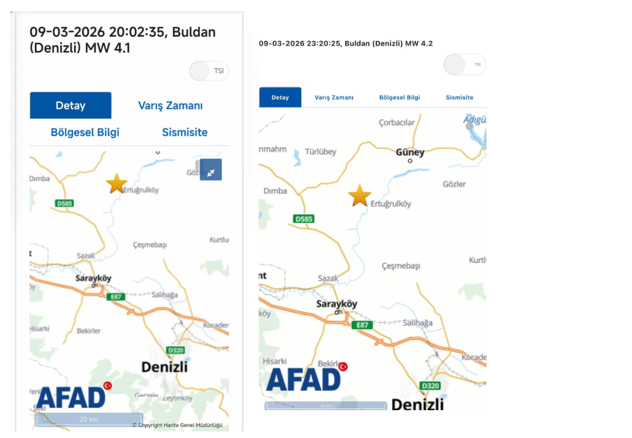 Saat 23.20’de kaydedilen deprem, yerin yaklaşık 12,16 kilometre derinliğinde gerçekleşti. Gün boyu devam eden artçı sarsıntıların ardından meydana gelen son deprem, Denizli kent merkezinde de hissedildi.