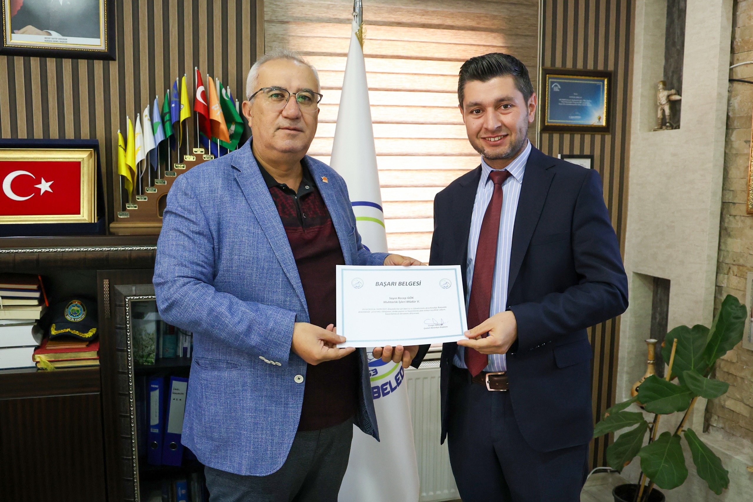 Çameli Belediye Başkanı Cengiz Arslan, denetim sürecinde gösterilen özverili çalışmalar nedeniyle belediye personeline teşekkür ederek, birim müdürlerine başarı belgesi takdim etti.