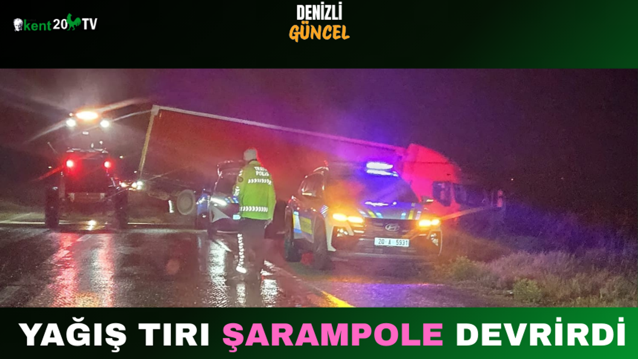 Edinilen bilgilere göre, Manisa’dan Denizli yönüne seyir halinde olan yüklü tır, yağış nedeniyle kayganlaşan yolda sürücüsünün direksiyon hâkimiyetini kaybetmesi sonucu kontrolden çıktı. Sürücünün tüm çabalarına rağmen durduramadığı tırın ön kısmı şarampole devrildi.